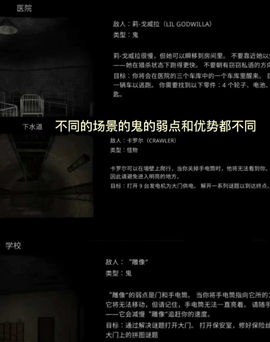 凌晨2点,你醒来发现医院里空无一人,而且似乎被锁住了。你在杂志上看到关于这家医院的诡异传说,发现唯一的逃生途径是通过车库门。