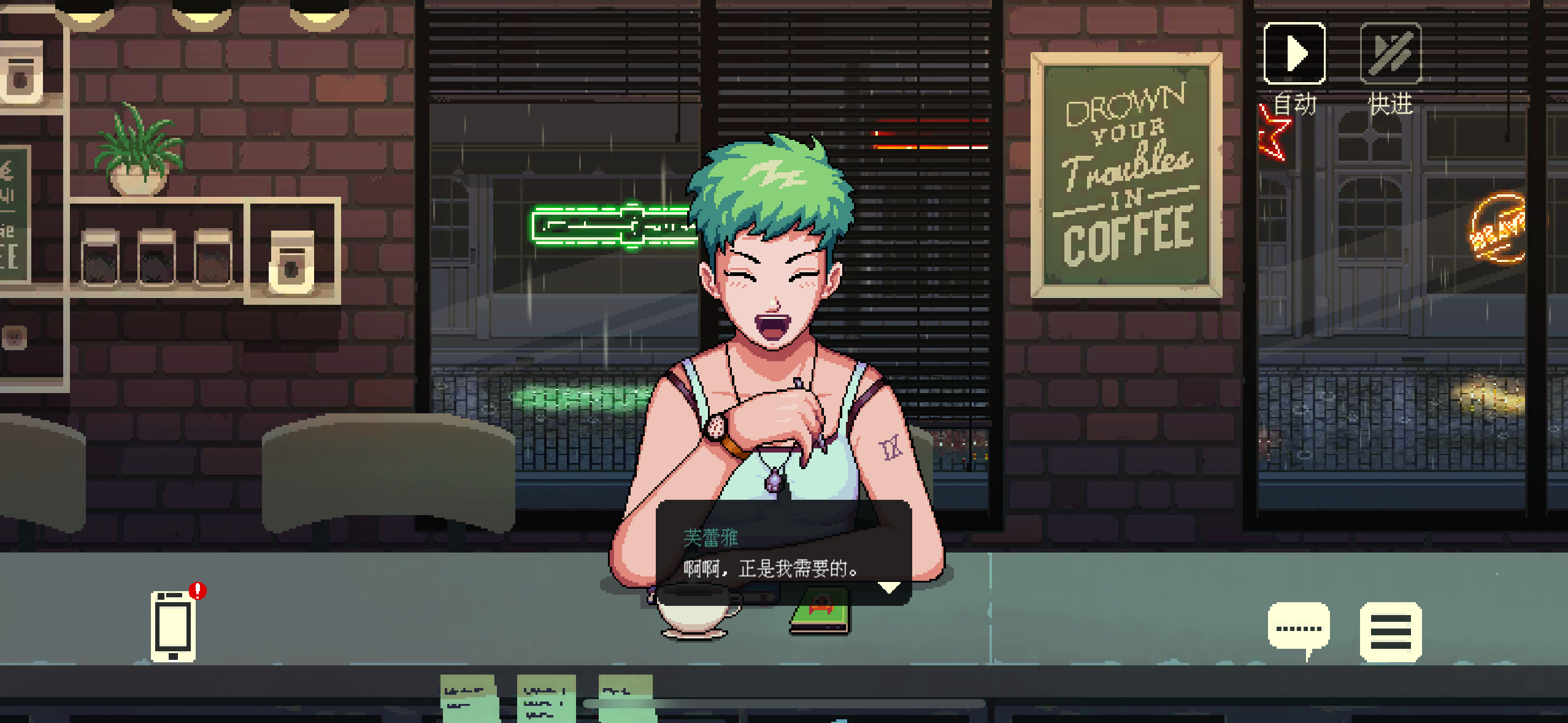 《解忧咖啡馆》(英文名:Coffee Talk)是一款由印尼独立游戏开发商Toge Productions制作的视觉小说兼模拟经营游戏,游戏背景设定在一个人类与精灵、兽人、魅魔等奇幻种族共存的现代都市。玩家扮演一家深夜咖啡馆的咖啡师,核心玩法是倾听顾客的故事与烦恼,并通过组合咖啡、茶、牛奶等原料为他们调制暖饮,以此推进剧情。游戏以其90年代日式动画风格的像素美术、舒缓的爵士与低保真音乐,营造出温馨治愈的氛围。